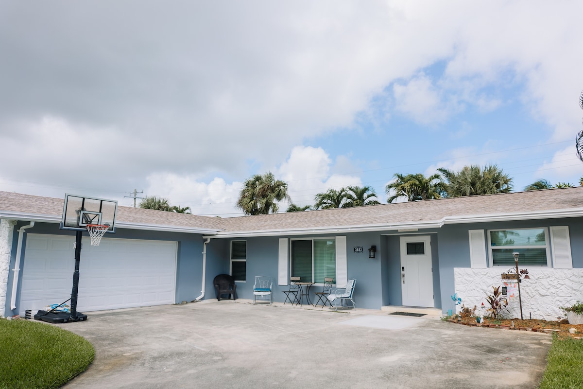 Maison absolument charmante de 2 chambres sur un grand terrain à North Palm Beach ! Entièrement rénovée en 2020 ! Elle est chaleureuse et confortable avec un espace pouvant accueillir jusqu'à 5 personnes. Vous profiterez d'une cuisine entièrement équipée pour tous vos besoins en cuisine et en pâtisserie, d'un canapé surdimensionné avec télévision Wi-Fi pour regarder vos émissions préférées et d'un marché local accessible à pied pour tout ce dont vous pourriez avoir besoin pendant votre séjour. Proche des plages, des restaurants locaux, des commerces et de tout ce que le nord de Palm Beach a à offrir !