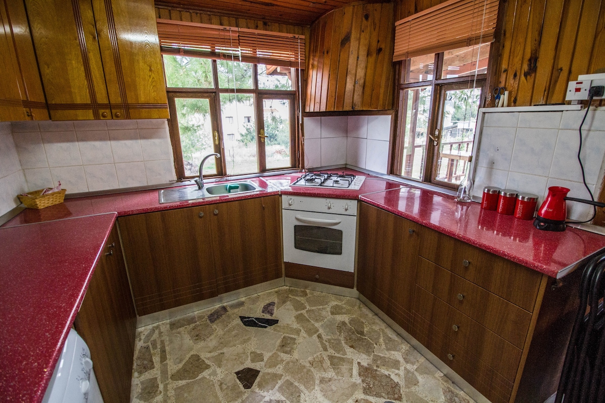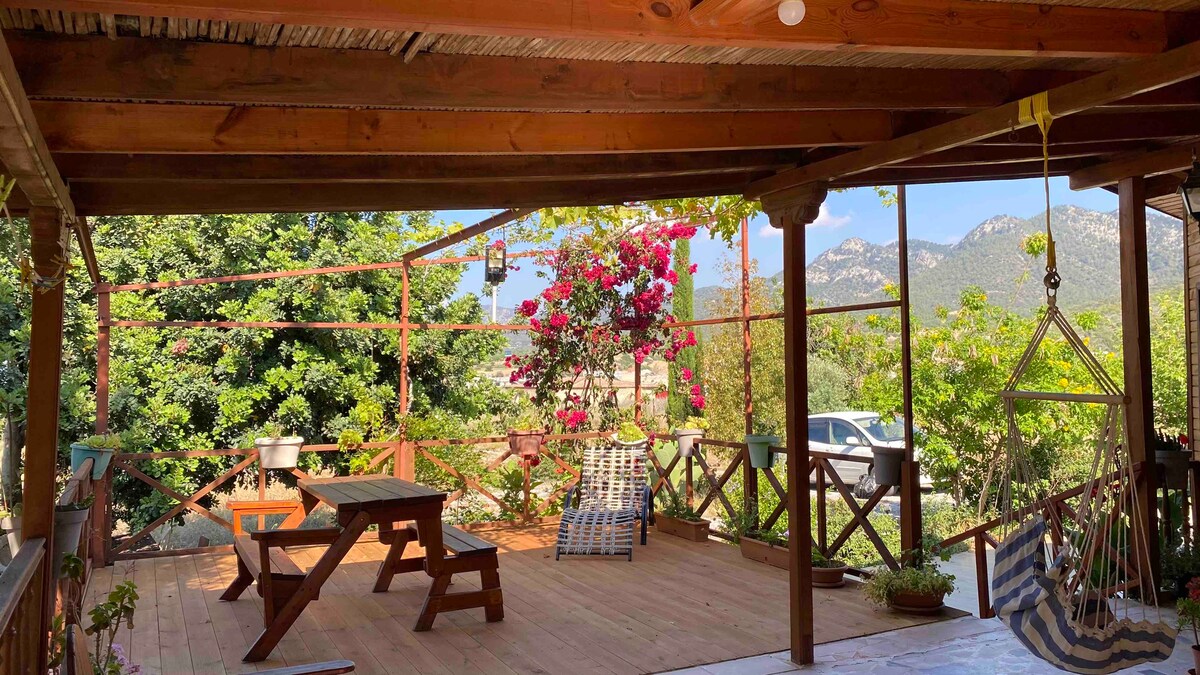 Magnifique bungalow en bois avec une cheminée en pierre, complémentaire à la nature exquise où il est situé. Le bungalow est très bien équipé d'un barbecue extérieur, d'une cuisine complète, d'une salle de bain et d'un mobilier de patio. Il se trouve à cinq minutes à pied de la plage de sable fin. Il a la mer d'un côté et les montagnes verdoyantes luxuriantes de l'autre. Akanthou est un endroit populaire pour les routards, les motards et les amoureux de la nature. Nous faisons de notre mieux pour cultiver des légumes biologiques dans le jardin pour vous.