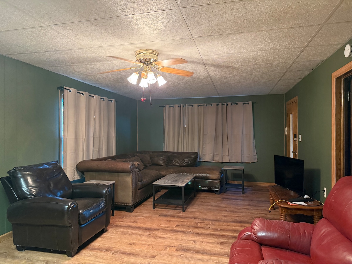 Détendez-vous avec toute la famille dans ce logement paisible. Cette maison du début des années 1900 est située dans une ferme en activité. Vous pourrez admirer le lever du soleil et vous installer dans votre grand air de près d'un acre. Les étoiles sont absolument magnifiques les nuits claires. Avec environ 5 000 pieds carrés, toute la famille a de la place pour s'étendre. Il y a beaucoup de meubles à partir du moment où la maison a été construite ou peu de temps après pour votre plaisir. Cette maison est une propriété familiale depuis sa construction.