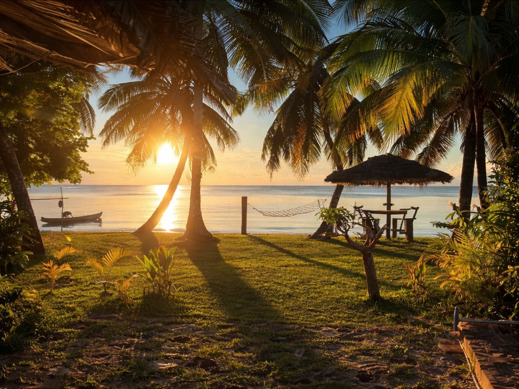 Belle petite maison bord de mer, les "pieds dans l'eau, orientée ouest et idéalement situé sur un magnifique lagon. Appréciez le large terrain donnant directement sur une plage propre. Cadre unique et reposant. Convient parfaitement à un couple et 2 enfants.