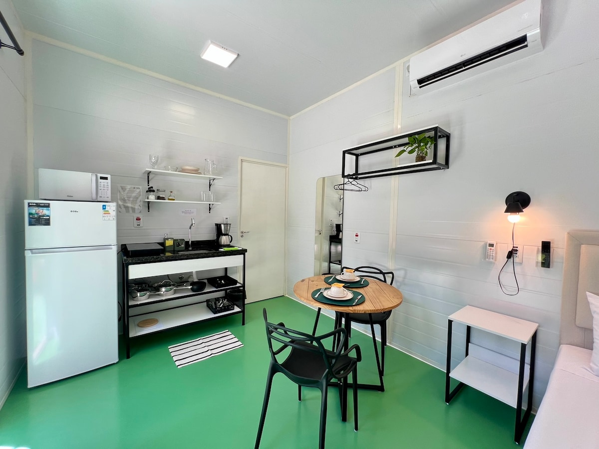 Mini casa de 21m² no Jardim La Salle, o bairro mais nobre de Toledo. A localização é privilegiada. O imóvel possui design moderno e funcional, projetado para oferecer conforto e silêncio para até 2 pessoas. Um grande diferencial é por ser um espaço em uma chácara urbana privada com um amplo jardim arborizado e amplo espaço aberto, ideal para quem busca descanso ou um ambiente de trabalho produtivo. A unidade conta com estacionamento gratuito e exclusivo no local.