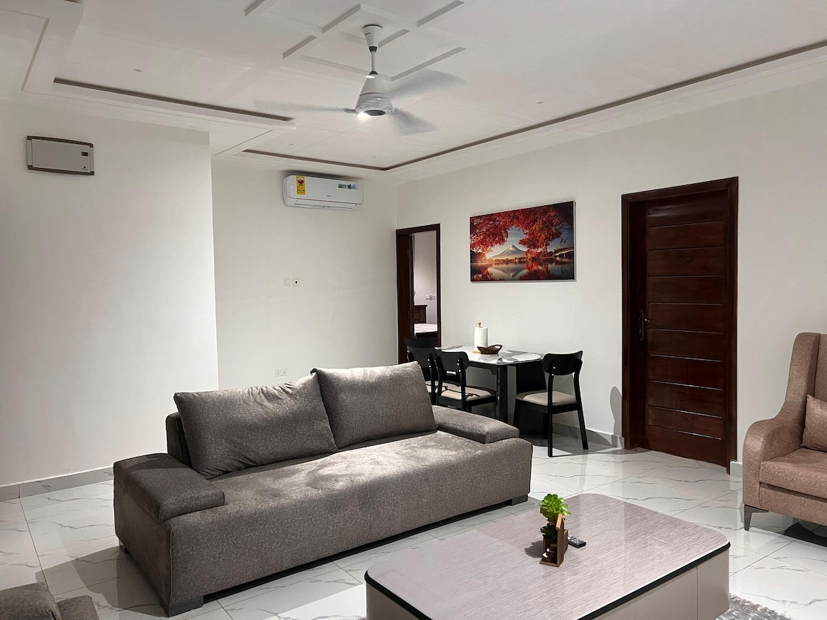 3 No. 2- bedroom apartment units, with 3 washrooms, a kitchen and ultra-modern facilities (free intercoms, WIFI, CCTV cameras, Dstv, Standby generator, etc) each. You are assured of high security, a serene environment with a peaceful atmosphere which makes it unique.