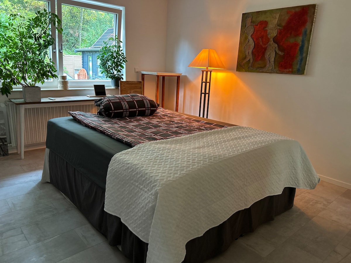Oasis de calme avec un beau jardin et un sauna panoramique en bois