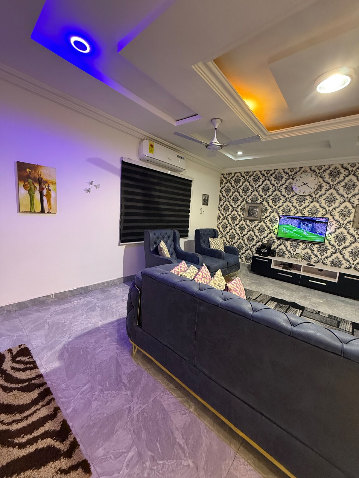 Découvrez le vrai luxe dans notre résidence de 4 chambres et 5 salles de bain, avec sécurité 24 h/24 et commodités modernes, y compris une cuisine design et un générateur de secours. Profitez du petit-déjeuner gratuit, de l'eau en bouteille et de l'eau chaude pour un bain relaxant à tout moment. Réservez votre séjour aujourd'hui !