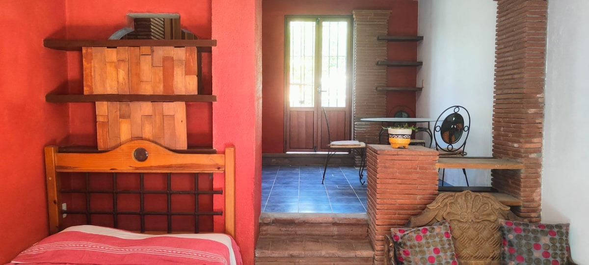 Petit studio sympa avec climatisation à deux pâtés de maisons du Zócalo de la ville. Toutes les attractions sont accessibles à pied en 10 minutes. Le logement est joliment meublé avec un charme simple d'Oaxaca. Tout est fourni. Veuillez noter que comme il est dans une zone de restaurant, il peut y avoir du bruit la nuit... Nous avons des fenêtres à double vitrage, mais il n'est pas recommandé pour les dormeurs légers (c'est pourquoi nous avons gardé le prix raisonnable pour cette annonce)...