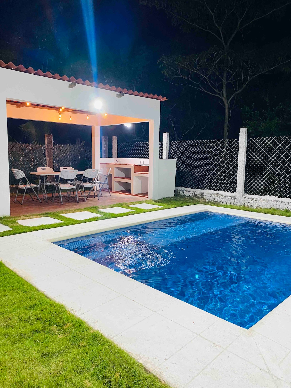 Une maison très confortable dans un style moderne, dispose de la climatisation dans toutes les chambres et ventilateurs dans les espaces communs. Portes en PVC et portes et fenêtres en tamis, bien éclairée, sûre et avec plusieurs environnements récréatifs ; une table de billard, un terrain de football, un jacuzzi et une piscine avec wet bar semi-ouverts qui vous permet de profiter du soleil. Deux pergolas avec trois hamacs une terrasse confortable équipée d'un bar, de bancs et de churrasquera.