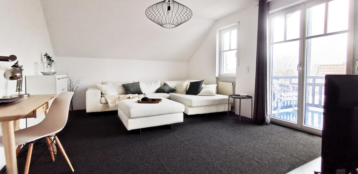 Bienvenue dans notre appartement moderne et nouvellement construit de 2 pièces en sous-sol, parfait pour les clients qui recherchent un confort de vie moderne et la tranquillité. L'appartement est entièrement équipé et meublé avec une grande attention portée aux détails. Il dispose également d'une terrasse privée. REMARQUE : L'appartement n'est pas accessible aux personnes à mobilité réduite ! L'entrée de l'appartement se fait par un escalier. L'appartement est situé à la campagne à 5 min en voiture de Wasserburg am Inn. Parking privé juste devant l'appartement.