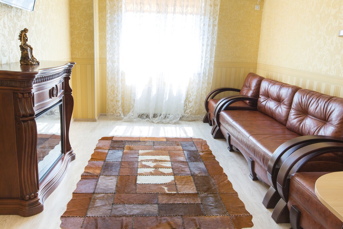 Appartement lumineux et spacieux au cœur d'Odessa sur la rue Lanzheronovskaya. Rénovation récente, grandes fenêtres, hauts plafonds, il y a un deuxième niveau avec un lit double. L'appartement est très confortable et accueillant. Lits principaux : lit double + canapé double + canapé une place et demie au sous-sol (c'est-à-dire en dessous du premier étage). L'appartement a tout : climatisation, chauffage au sol, machine à laver, 2 téléviseurs, sèche-cheveux, fer à repasser, vaisselle, pantoufles. Douche. Entrée privée.