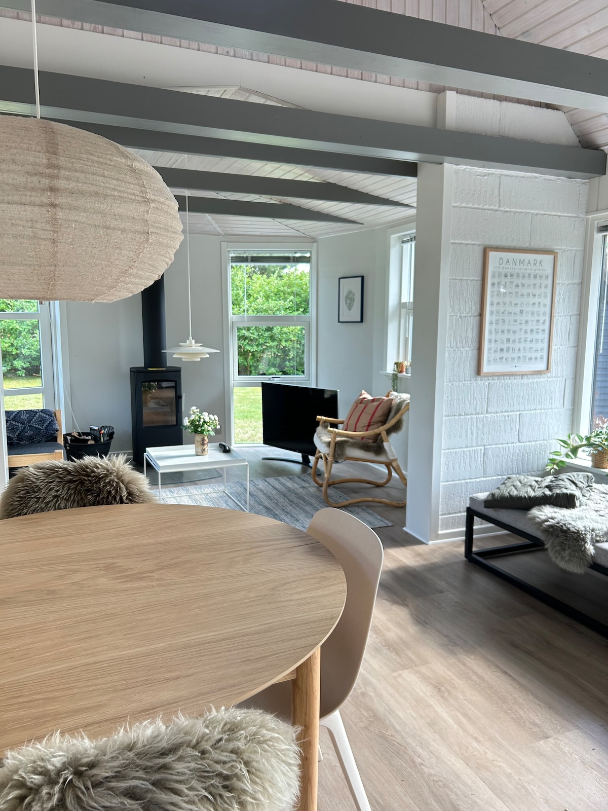 Hyggeligt sommerhus på 138 kvm med god plads til 4 voksne samt 4 børn og optil 2 spædbarn i rejseseng. Sommerhuset er nyrenoveret. Min. 4 dag udenfor sæson og 1 uge i højsæson. Slutrengøring kr. 850,- pr. ophold. Der følger en brændekurv fyld med brænde, medbring evt. selv træ. Der betales for forbrug efter måler, strøm 3,79 kr. pr kwh, nedsættes til kr. 3,- grundet lavere afgift pr. 1/1-26. vand kr. 89,- pr m3, udlejer aflæser ved tjek ind og ud og sender opkrævning af reelt forbrug via Airbnb