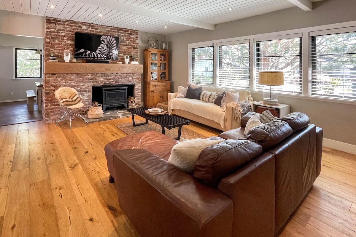 Vue sur la montagne depuis la fenêtre de la chambre et à seulement quelques pas de l'une des premières plages familiales de Californie. À quelques pas des hamburgers de renommée mondiale « The Spot », mais vraiment, tout est dans la plage, elle est tellement proche ! Les sentiers pédestres dans les zones humides sont également proches, les enfants adorent les explorer. Carp's a aussi quelques restaurants sympas, notre préféré est Teddy's by the Sea. En partie parce que notre chien s'appelle Teddy, mais la nourriture est plutôt bonne aussi !