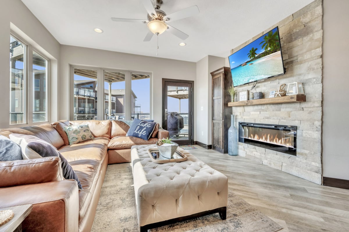 Situé sur le lac Okoboji au Bridge's Bay Resort, cet appartement offre une vue imprenable toute l'année. Dernier étage, vue sur le lac, grand balcon, plafonds voûtés, restaurants sur place, 6 passes journaliers pour le parc aquatique/la piscine (en saison) et salle de sport. Cet appartement familial dispose de 3 chambres, d'un espace de travail à distance, d'un lave-linge/sèche-linge, d'un gril, d'une télévision, de jeux et d'une cuisine entièrement équipée. Au cœur d'Okoboji, cet appartement se trouve à quelques minutes d'incroyables magasins, restaurants et de nombreuses activités de plein air. Pas d'animaux de compagnie, de fêtes ou de tabac.