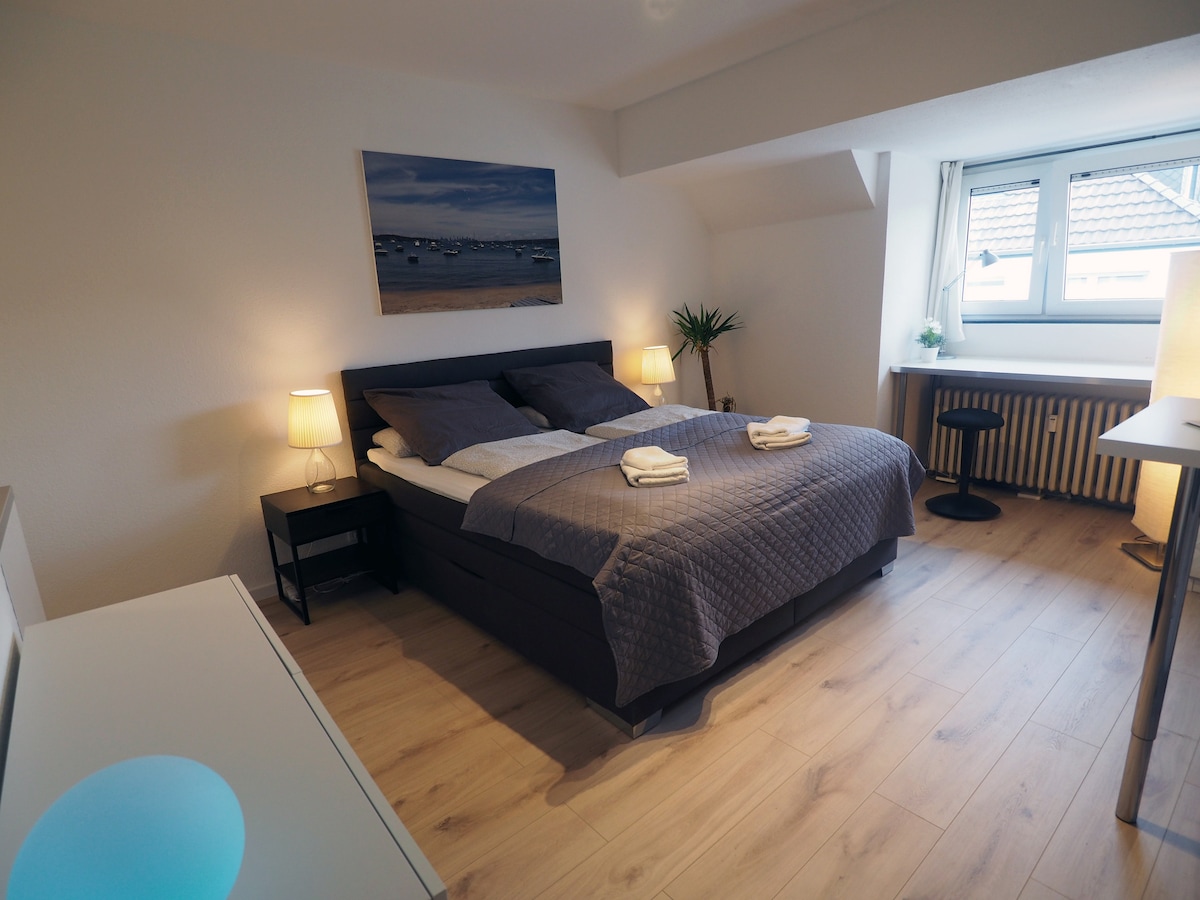 Appartement 1 pièce exclusif et ensoleillé dans le centre-ville de Cologne pour 1 à 2 personnes ; espace ouvert, chauffage par le sol, lit confortable (1,40 x 2 m), coin salon élégant, cuisine, meubles encastrés de haute qualité ; salle de bain moderne avec lumière du jour/meubles exclusifs ; Wi-Fi haut débit jusqu'à 100 Mbit/s ; éclairage sophistiqué. À 3 min des rues commerçantes, restaurants et bars à proximité, à 800 mètres de la cathédrale, autoroute A57 en voiture en 5 min. Réservations de 90 jours ou plus sur demande.