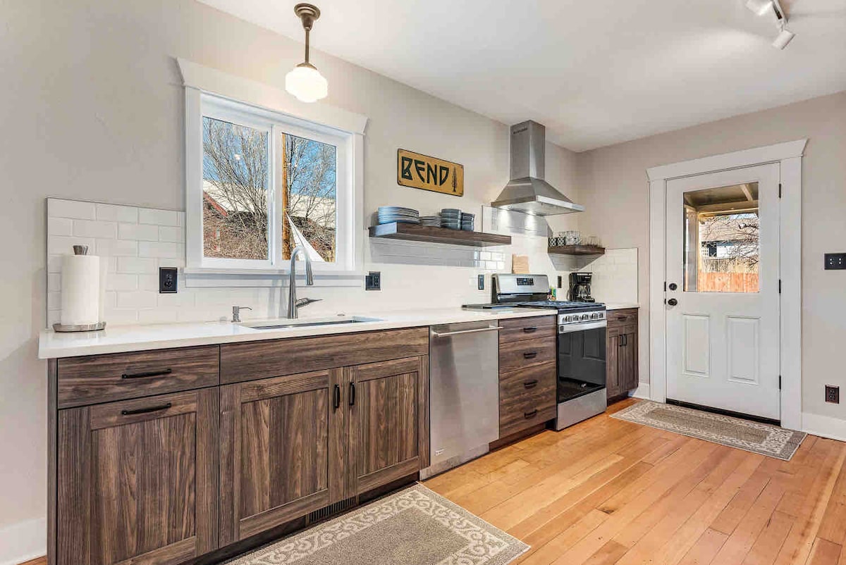 Ce chalet historique de la vieille ville de Bend offre un cadre relaxant pour se détendre avec un beau spa et un sauna en cèdre dans sa remise restaurée. Marchez jusqu'aux attractions : 0,2 mi. jusqu'aux meilleurs magasins et restaurants, et 0,4 mi. jusqu'à Mirror Pond & Drake Park! Chauffage séparé dans chaque pièce, rangement pour l'équipement de neige, chauffe-bottes, barbecue et nouvelle laveuse/sécheuse. Stationnement dans l'allée et dans la rue (gratuit). Wifi rapide et télévision intelligente. La cuisine est entièrement approvisionnée et nous avons hâte de vous accueillir!