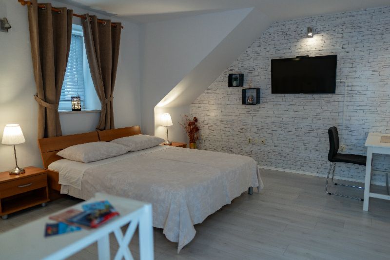 Lijepi studio s bračnim krevetom. Ispred Apartmana se nalazi predivna terasa sa cvijećem te prostranim stolom i stolicama gdje možete uživati i odmarati. Na terasi je dozvoljeno pušenje. U blizini se nalaze razni restorani,kafići trgovine, taxi i autobusna stanica za javni gradski prijevoz te dostupan parking uz naplatu. Apartman se nalazi u blizini glavnog autobusnog kolodvora (odlična povezanost sa ostatkom Hrvatske i zemaljama u regije) te luka koja povezuje grad sa otocima.