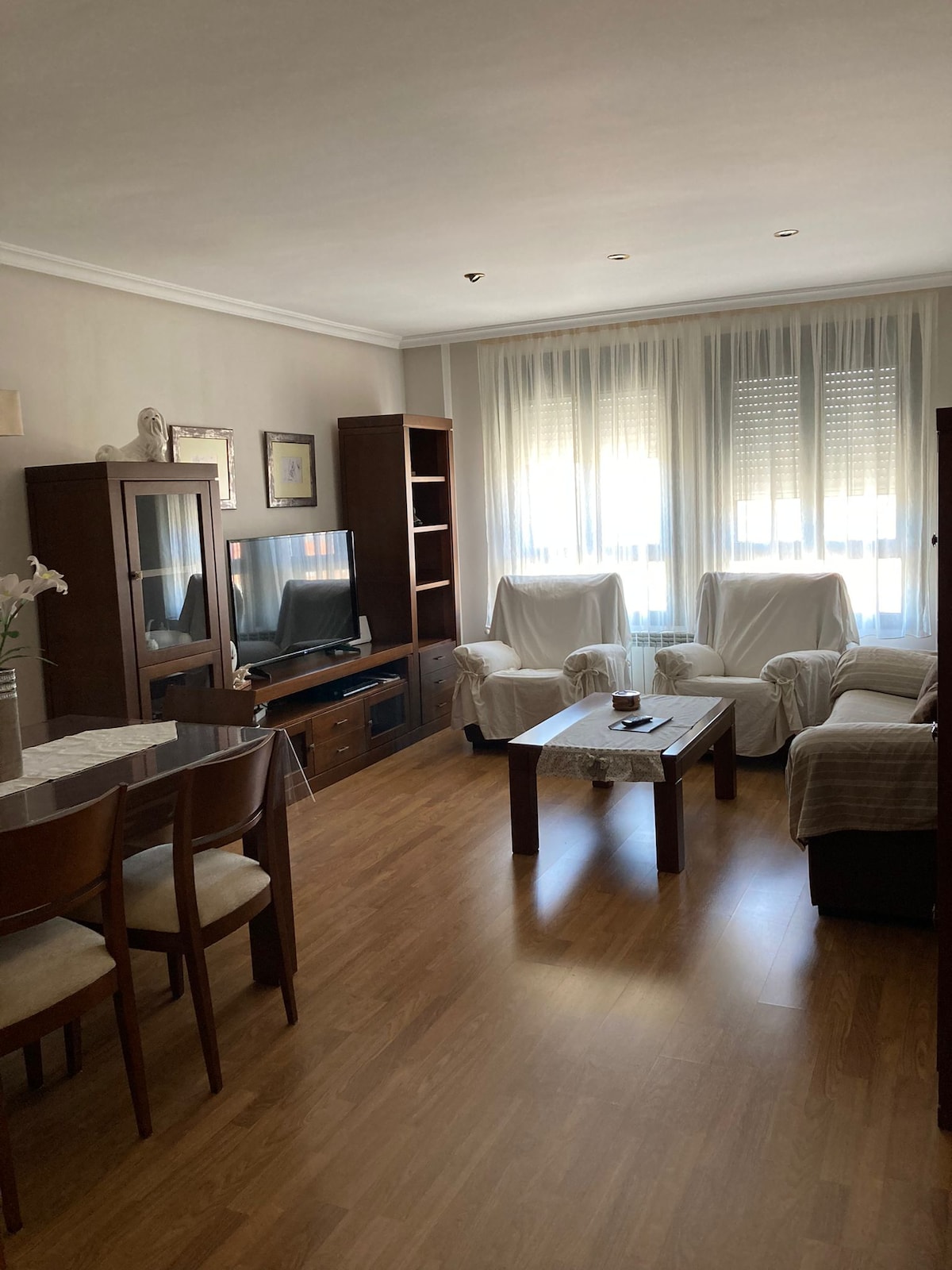 Ce fabuleux logement de toit avec poutres apparentes et 94 m2, dispose d'un impressionnant salon-salle à manger et d'une cuisine entièrement équipée, d'un canapé-lit très confortable de 160 cm sur 200 cm. Depuis les deux chambres, avec des fenêtres qui vous feront voir la magie et la grandeur de la Hoz depuis un sixième étage. Le logement dispose d'un total de 2 chambres avec des lits doubles, dont une avec salle de bains privative. Le logement dispose également d'une deuxième salle de bain complète pour une plus grande intimité des clients