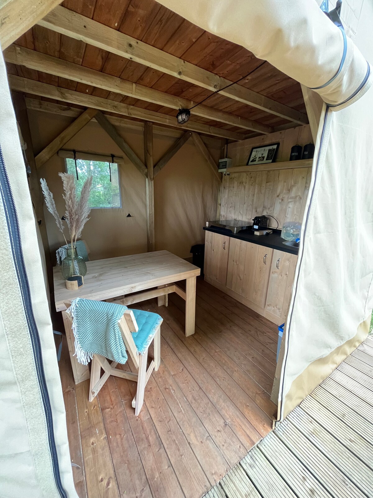 Nichée sous de grands chênes et avec une belle vue sur des prairies verdoyantes, vous trouverez cette belle cabane cachée dans la nature. Hidden Cabana est durable, hors réseau et équipé de toutes les commodités modernes. Surtout, vous vous retrouverez au milieu de la nature, tout en vous baignant dans le luxe avec un lit Auping, du linge de lit Vandyck, une douche à effet pluie économiseur d'eau, un réfrigérateur et tous les ustensiles de cuisine nécessaires pour une cuisine raffinée. Cet endroit est un paradis de paix, l'endroit idéal pour ralentir et profiter pleinement de la nature.