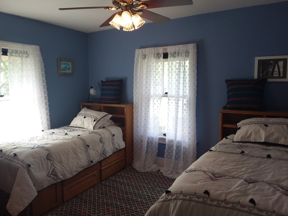 Appartement au rez-de-chaussée dans un quartier calme bordé d'arbres plein de caractère et de charme. Porche avant et patio arrière relaxants. Art provenant de nos voyages et cuisine entièrement équipée. À seulement deux pâtés de maisons du centre-ville de Council Bluffs, où vous pourrez prendre un repas, boire un verre ou faire du shopping. Le centre-ville d'Omaha, l'aéroport, l'Iowa Western Community College, Stir Cove et le zoo d'Omaha sont tous à 15 minutes. C'est une maison historique, donc elle aura des bizarreries qui viennent avec une maison plus ancienne. La salle de bain est une douchette à main/baignoire uniquement.