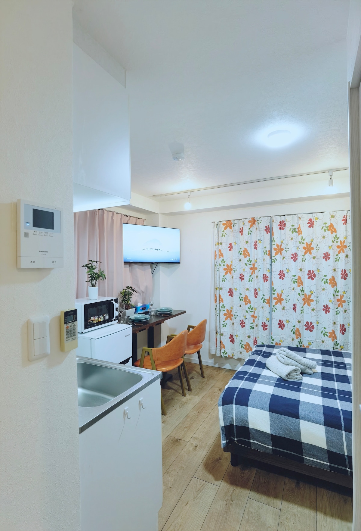 Récemment construite en décembre 2019, la chambre est de style moderne/japonais et offre un espace confortable pour que vous puissiez y passer du temps. Il y a de nombreuses installations de chambre, telles qu'une cuisine et une machine à laver pour les invités à long terme, y compris les familles et les gens d'affaires. Bien que la salle se sent hors de l'ordinaire, vous pouvez passer du temps ici et utiliser la salle pratiquement. La chambre dispose de deux lits doubles et jusqu'à 4 personnes peuvent séjourner dans la chambre. (Il dispose d'une chambrede 25 personnes idéale pour 2 personnes.)
