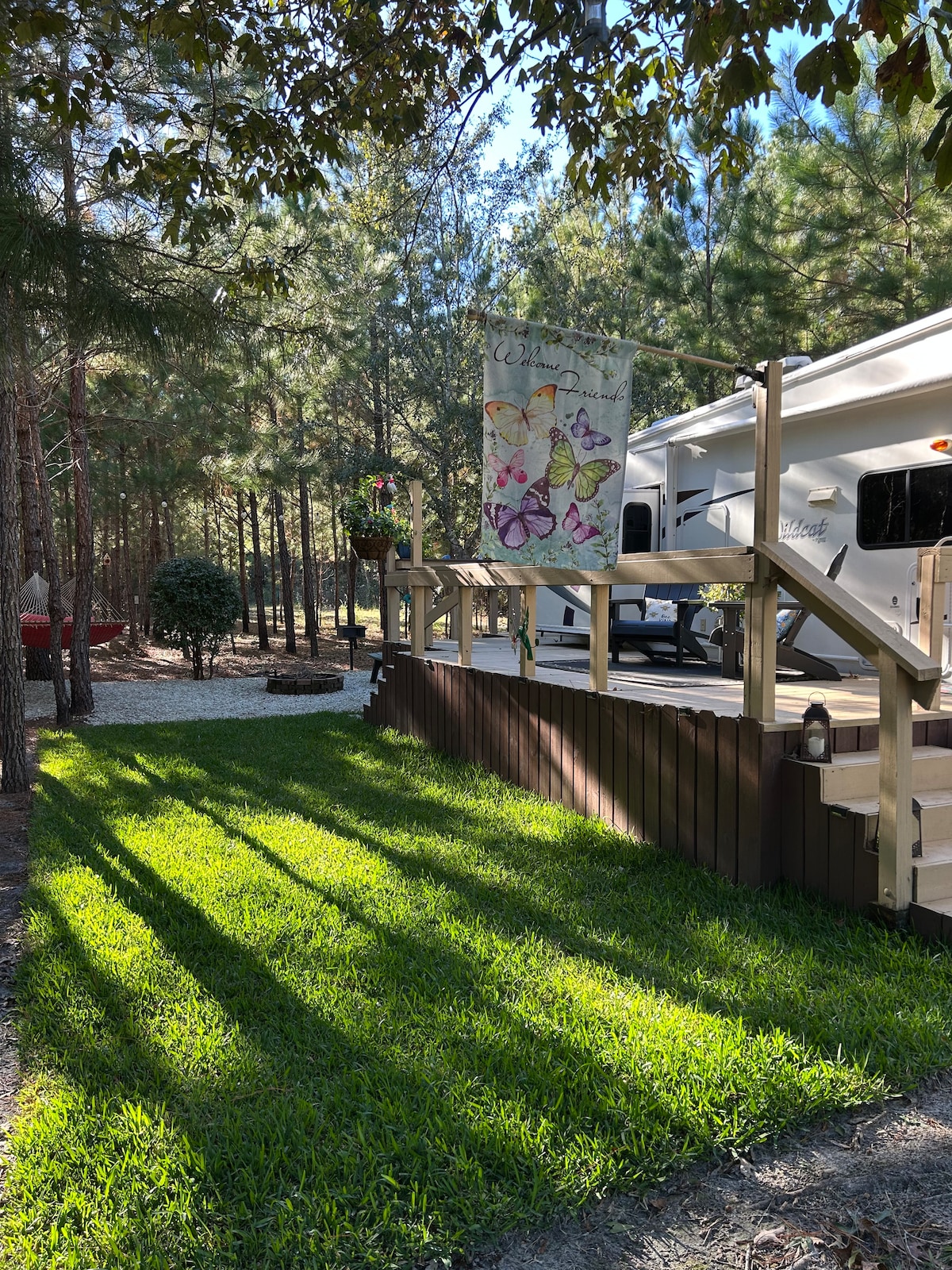 Évadez-vous au cœur de la nature pour une expérience de camping pas comme les autres ! Notre Airbnb « Nuttin 'Fancy » en pleine forêt offre la retraite parfaite. Détendez-vous, prenez une bière ou un verre de vin et profitez de la simplicité de la nature. Que vous regardiez les étoiles sur la terrasse ou que vous vous réveilliez près du feu par les nuits fraîches, il s'agit de créer des souvenirs dans les bâtons, sous les étoiles. Le camping-car est adapté pour 2 adultes et 1 à 2 enfants maximum. Plus de deux adultes, des frais pour les voyageurs supplémentaires s'appliquent.