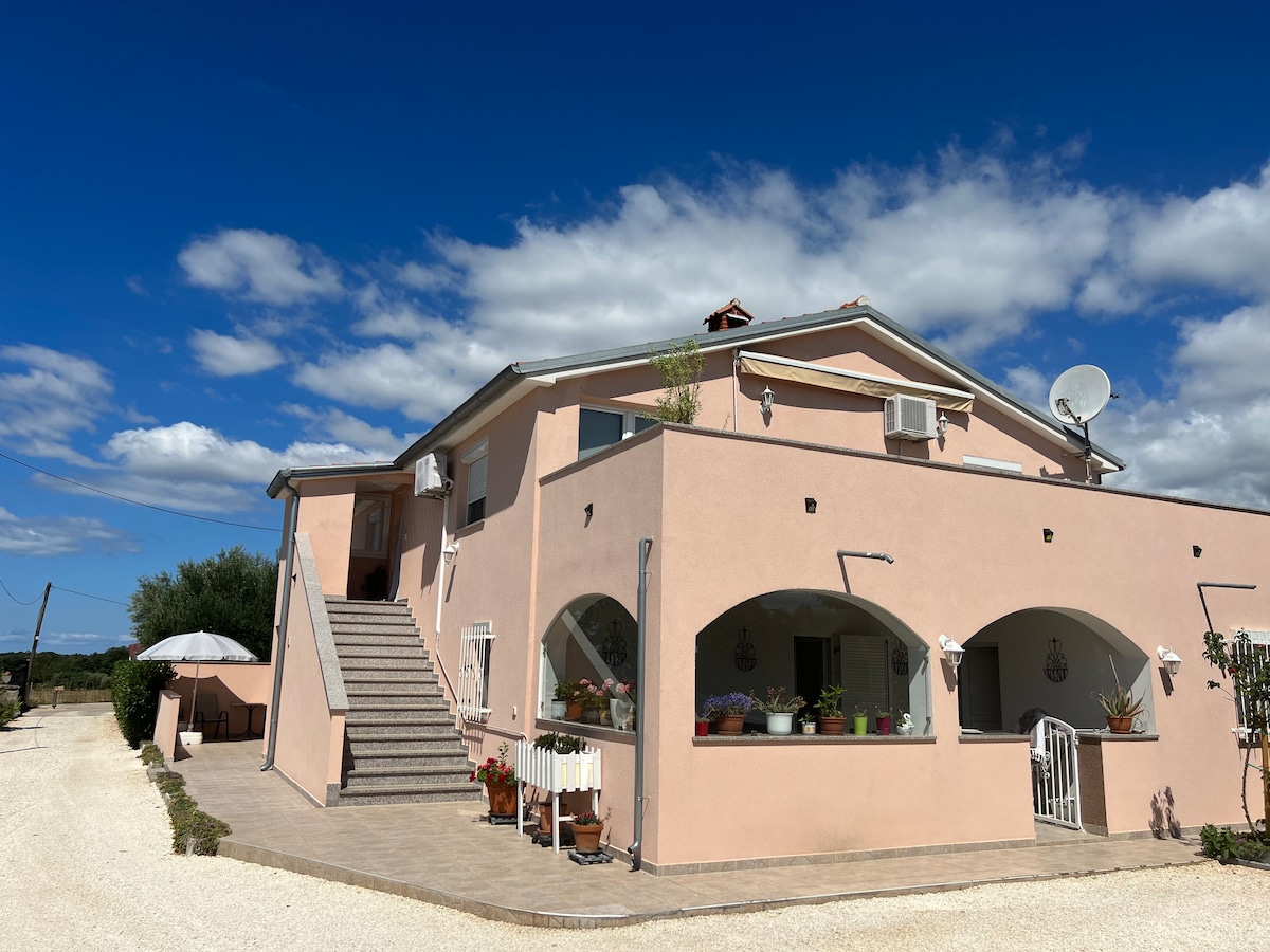 100m2+ apartment for 1 to 5 guests. 2 double + 1 single room. Free WiFi, fully equipped kitchen, private balcony, large fenced yard for outdoor seating and sunbathing, tavern, grill, swing, huge seawater pool, outdoor solar shower. Bed linen, towels, kitchen towels, and basic amenities are included, as well as a welcome drink and some refreshments in the fridge. Explore Pula's rich history and stunning beaches just 10 min away.