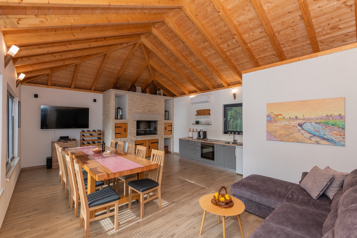 Maison de vacances joliment décorée avec un jardin spacieux entouré de verdure. Elle est située dans l'arrière-pays de la Dalmatie, près de la ville d'Imotski. Le logement est parfait pour les couples, les aventuriers en solo, les voyageurs d'affaires et les familles (avec enfants). Elle se compose d'un rez-de-chaussée et d'un premier étage reliés l'un à l'autre par des escaliers intérieurs. Pour vous rafraîchir lors des chaudes journées d'été, vous disposerez d'une piscine située derrière la maison.