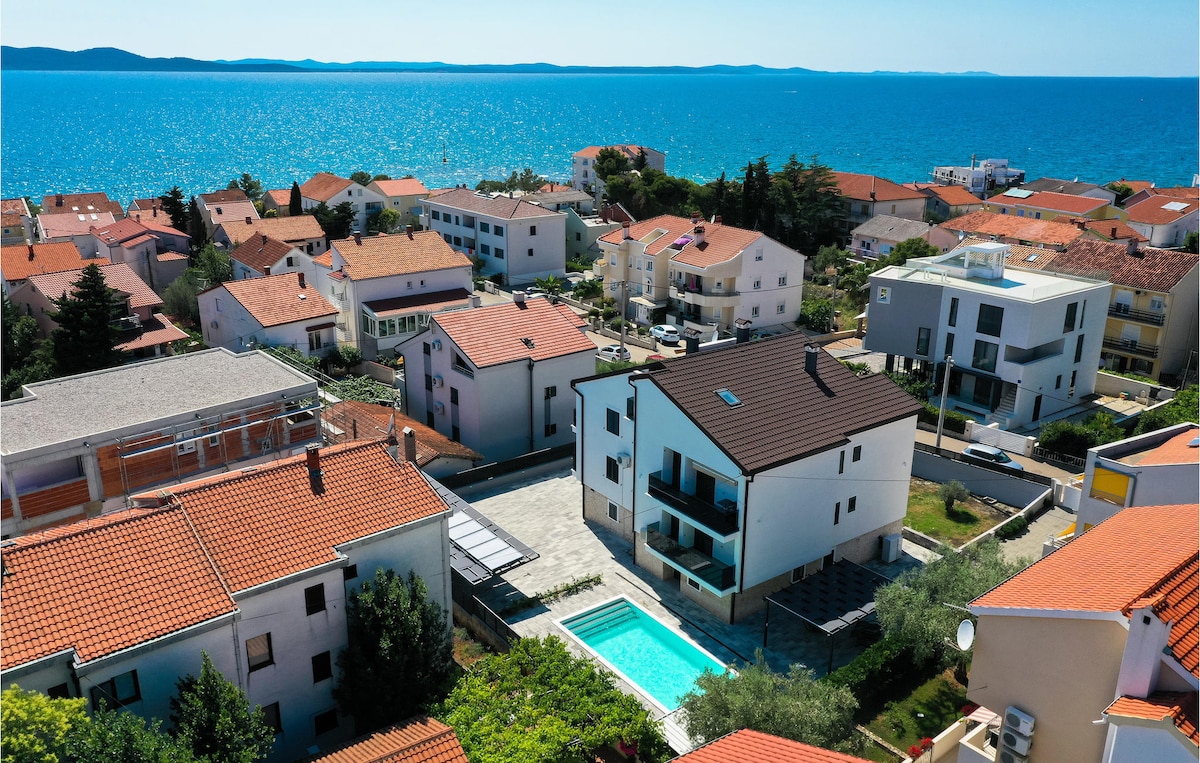 Maison de vacances récemment rénovée avec piscine privée et jardin. La maison fait 80 m² avec un jardin de 150 m². Il dispose de deux chambres, d'une cuisine avec un coin repas et un salon, et une salle de bain. Le jardin dispose d'une piscine saisonnière, d'une terrasse avec une table de salle à manger, d'un barbecue, de chaises longues et d'une douche solaire. La piscine et le jardin sont réservés aux invités, assurant une intimité totale. Situé à 3 km de Zadar et à 800 m de la mer et de la plage locale.