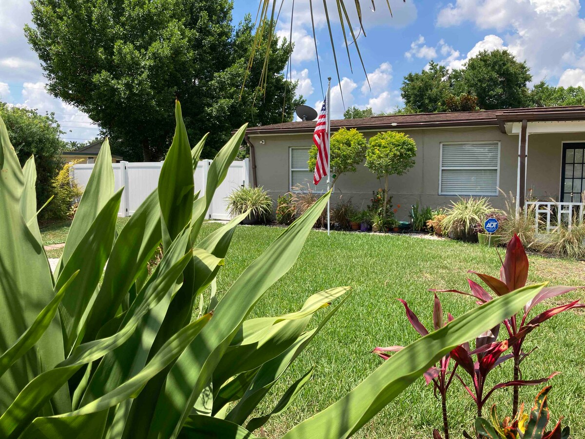 Venez séjourner dans notre suite confortable et pittoresque située dans le quartier historique du centre-ville de Lake Davis, à 5 minutes à pied d'un marché de quartier calme, à 1 mile à pied du centre-ville d'Orlando avec divertissement et du marché fermier du centre-ville. À moins de 30 minutes des plus grandes attractions du monde : Disney, Universal Studios, Sea World, etc. La plage est à 1 heure de route. Une place de parking. La chambre est reliée à une maison familiale, vous pouvez entendre les invités à côté. Pas pour les fêtes. Aucun animal de compagnie.