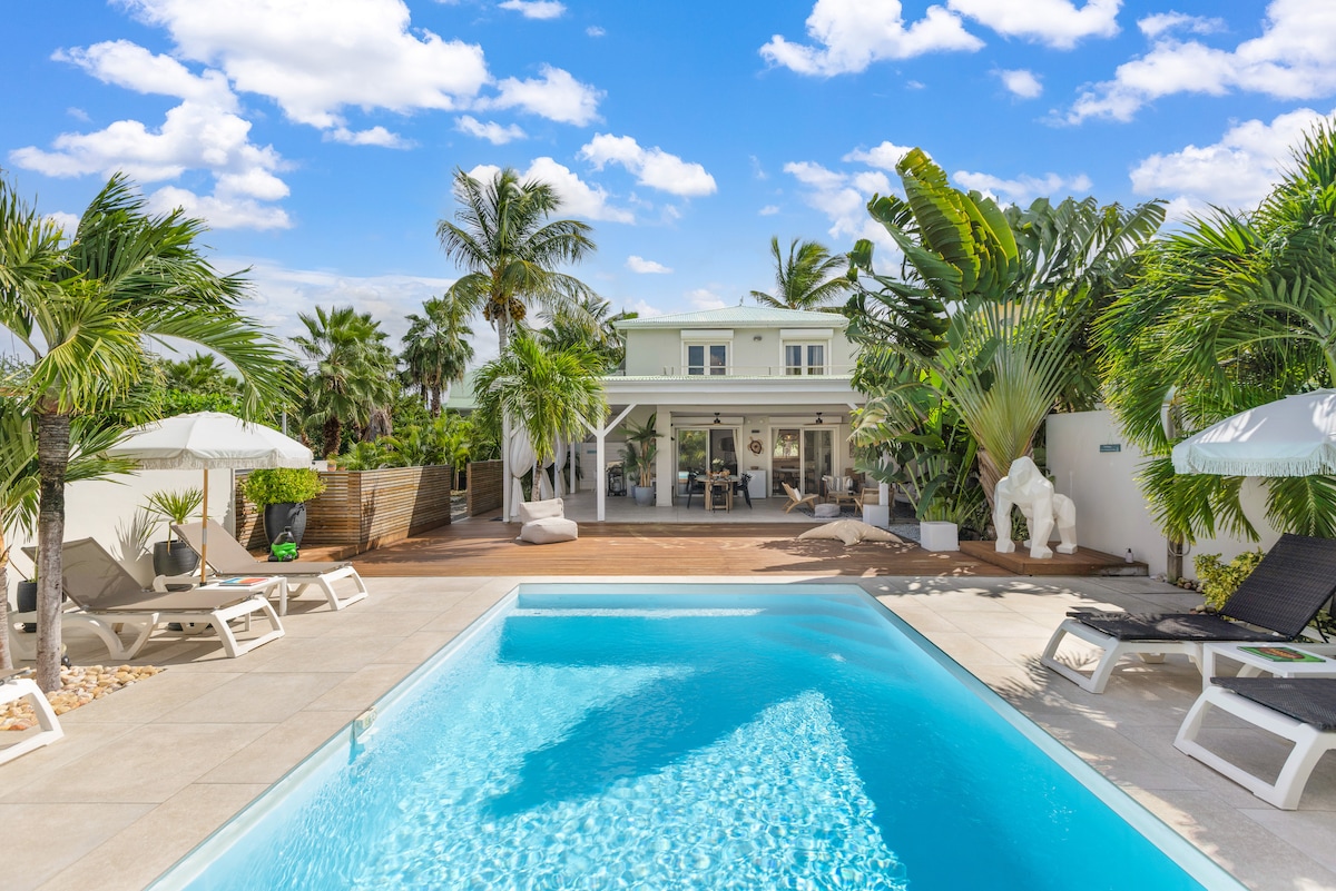 Cette villa dispose d'un grand espace extérieur avec 300 M2 de terrasse et un grande piscine privée de 7M/4M. Cette propriété se trouve à 2 mn à pied de la plage et à 5 mn de tous les restaurants et activités de la baie orientale. Un endroit unique pour passer des vacances exceptionnelles. Cette villa est équipée d'une citerne donc il ne peut pas y avoir de coupures d'eau.