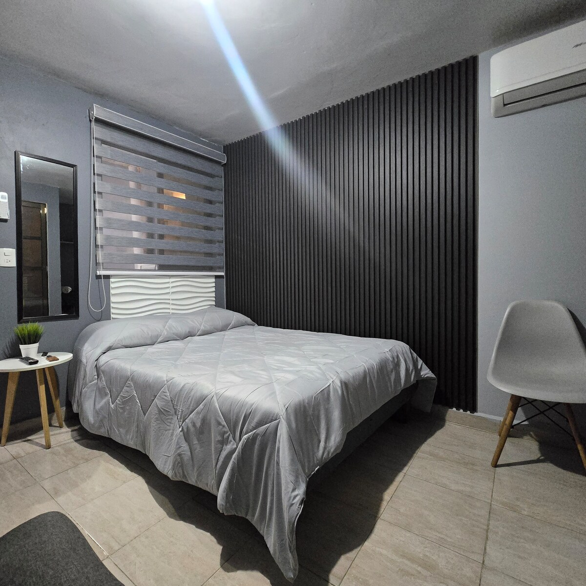Appartement neuf à l'ambiance mexicaine situé tout près du centre ville d'Orizaba, qui vous invite à profiter d'un séjour agréable dans un quartier sécuritaire pour profiter des plus beaux endroits de la ville. Il dispose d'une chambre spacieuse pour deux personnes, d'une salle de bain complète, d'une cuisine complète, d'une entrée séparée, et de notre soutien et de notre attention pour rendre votre séjour plus agréable.