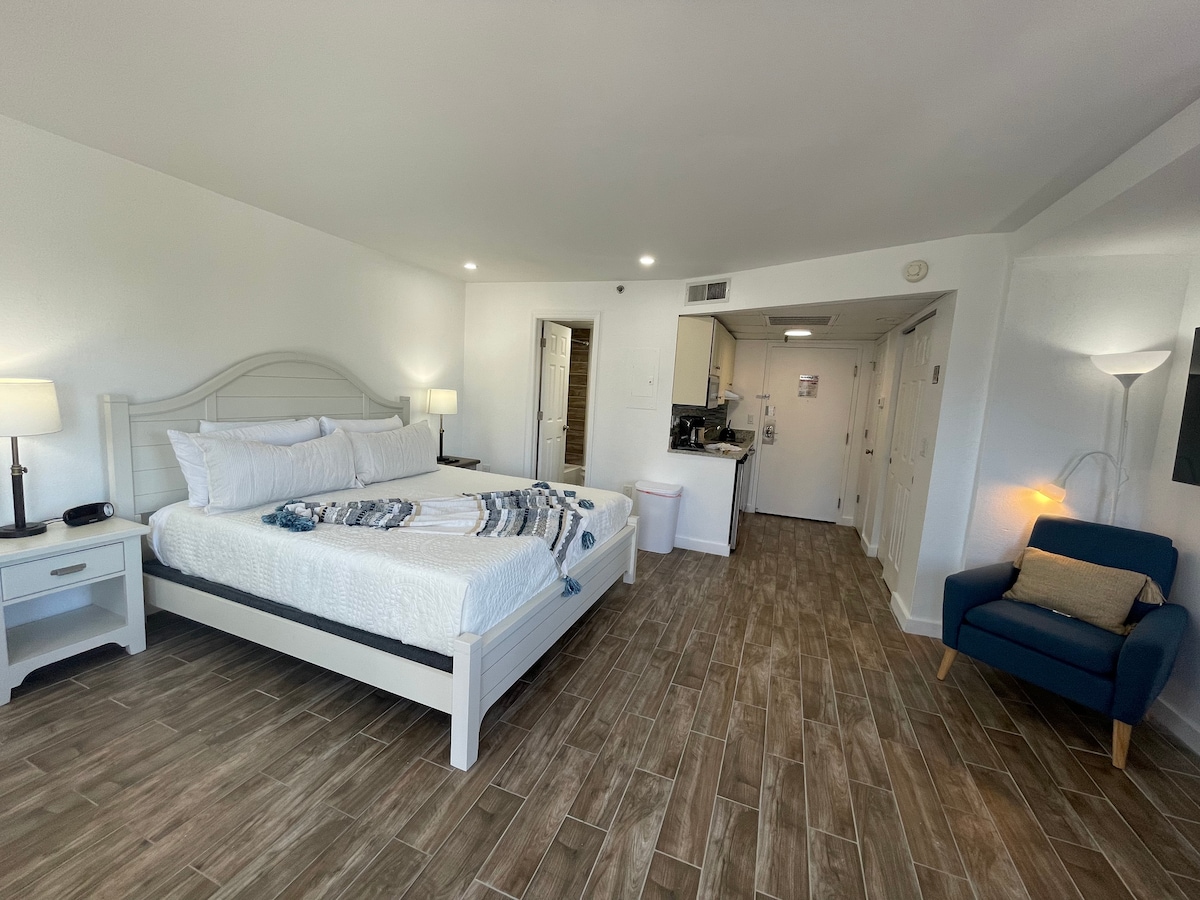 Studio récemment rénové avec un grand balcon et une vue imprenable sur les feux d'artifice d'Universal Studios. Dans un emplacement idéal, peut accueillir jusqu'à 6 personnes. Grande sélection de restaurants et de fast-foods à proximité. Aussi, à proximité de nombreuses autres attractions comme Volcano Bay, Island of Adventure et All the Fun in I-Drive. Comprend une kitchenette avec des appareils électroménagers, des ustensiles de cuisine et des ustensiles.