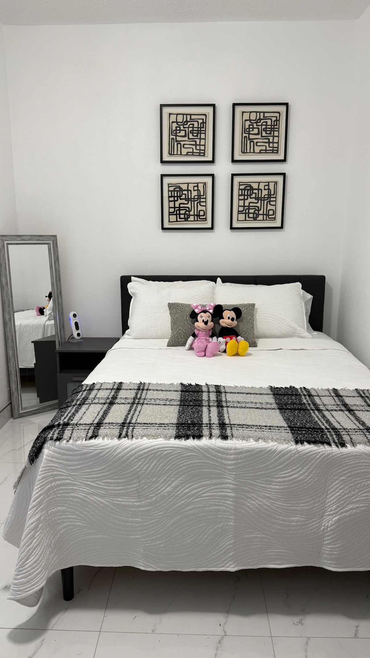 Ce studio récemment rénové, moderne et propre, a été fraîchement conçu avec des couleurs merveilleuses et lumineuses et un tout nouveau mobilier. Tout est soigneusement sélectionné pour créer le séjour Airbnb parfait. Vous séjournerez à 15 minutes du centre-ville d'Orlando, à 20 minutes d'Universal Studios et à 30 minutes en voiture de Disneyworld. INCLUS - 1 lit complet - 1 salle de bain complète ; - 1 télévision connectée ROKU - Wi-Fi 60 Mbps - Cuisine - Réfrigérateur ; - Table et chaises de salle à manger ; - 1 place de parking - Climatisation/chauffage - Plage de température 70°F-79°F