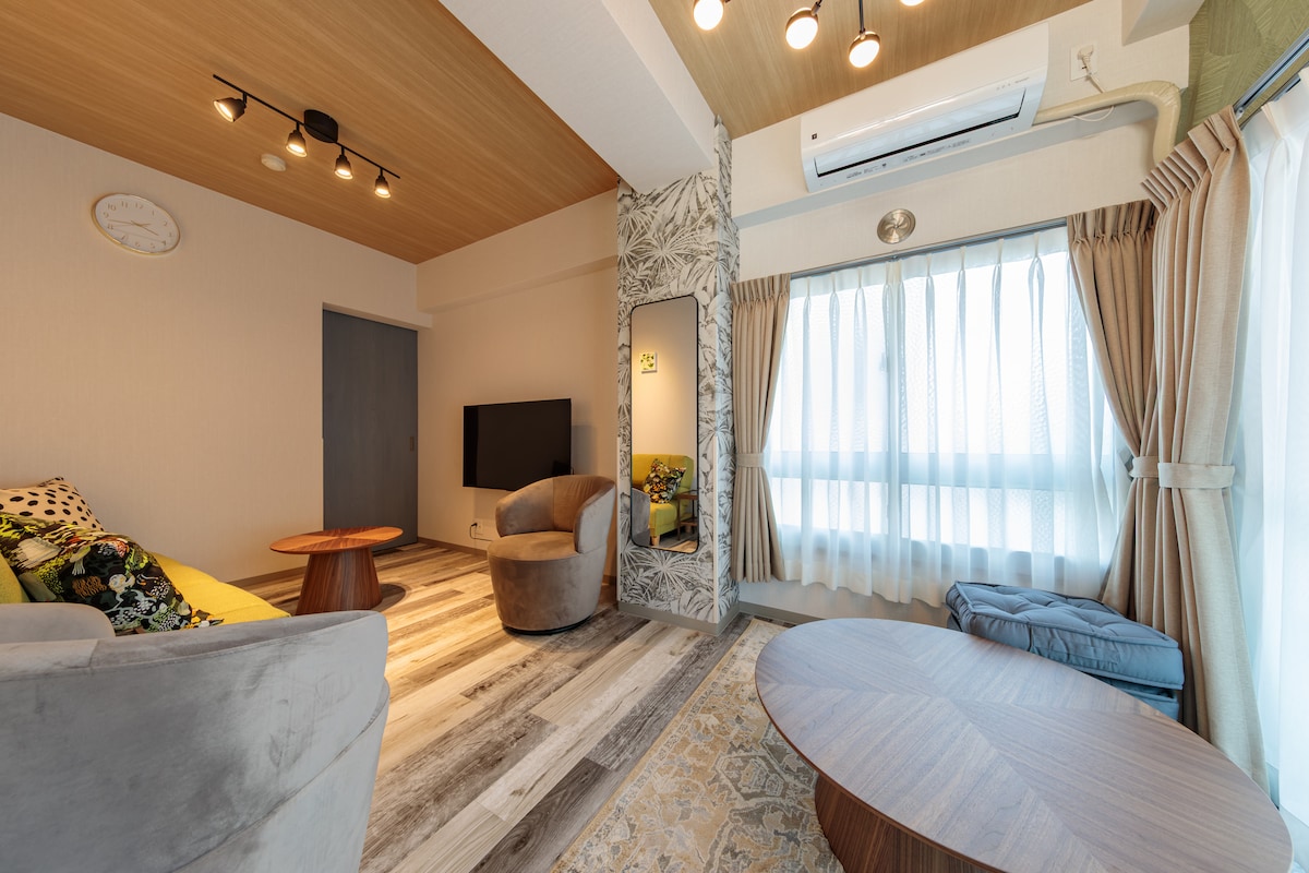Osaka Gem Trendy 2BR+Tatami | N°5 HOSSY STYLE Séjour