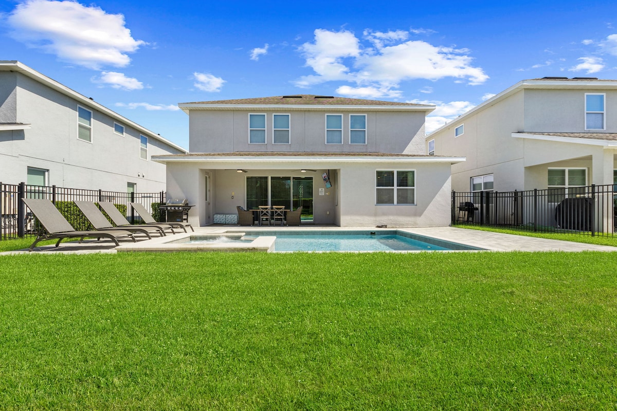 7 chambres, 14 lits, 7 salles de bain, piscine chauffée et près de Disney