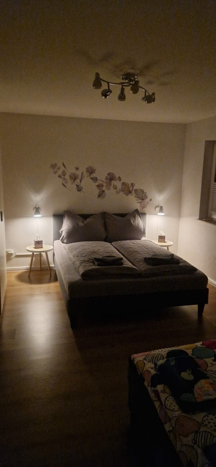 😍Prends la famille, clique avec /sauna, 🔥superbe jardin 25 m² cabane en rondins.👍Les 75 m² jusqu'à 8 hôtes et 4 lits🛌 bel♥️ appartement avec 2 1/2 chambres, une chambre à coucher d'env. 17 m² et un salon/salle de séjour ouvert 👍d'env. 41 m² et Cuisine avec😍 lits doubles de haute qualité +TV /WLAN 😍super hébergement pour le plaisir 😀et le divertissement sur place Skidomizil Langlauf 🎿 Lindau, Suisse Lac de Constance et Autriche 🇦🇹 Füssen avec château 🌟situé entre la station thermale de Bad Grönenbach 👍et le lieu de pèlerinage d'Ottobeuren
