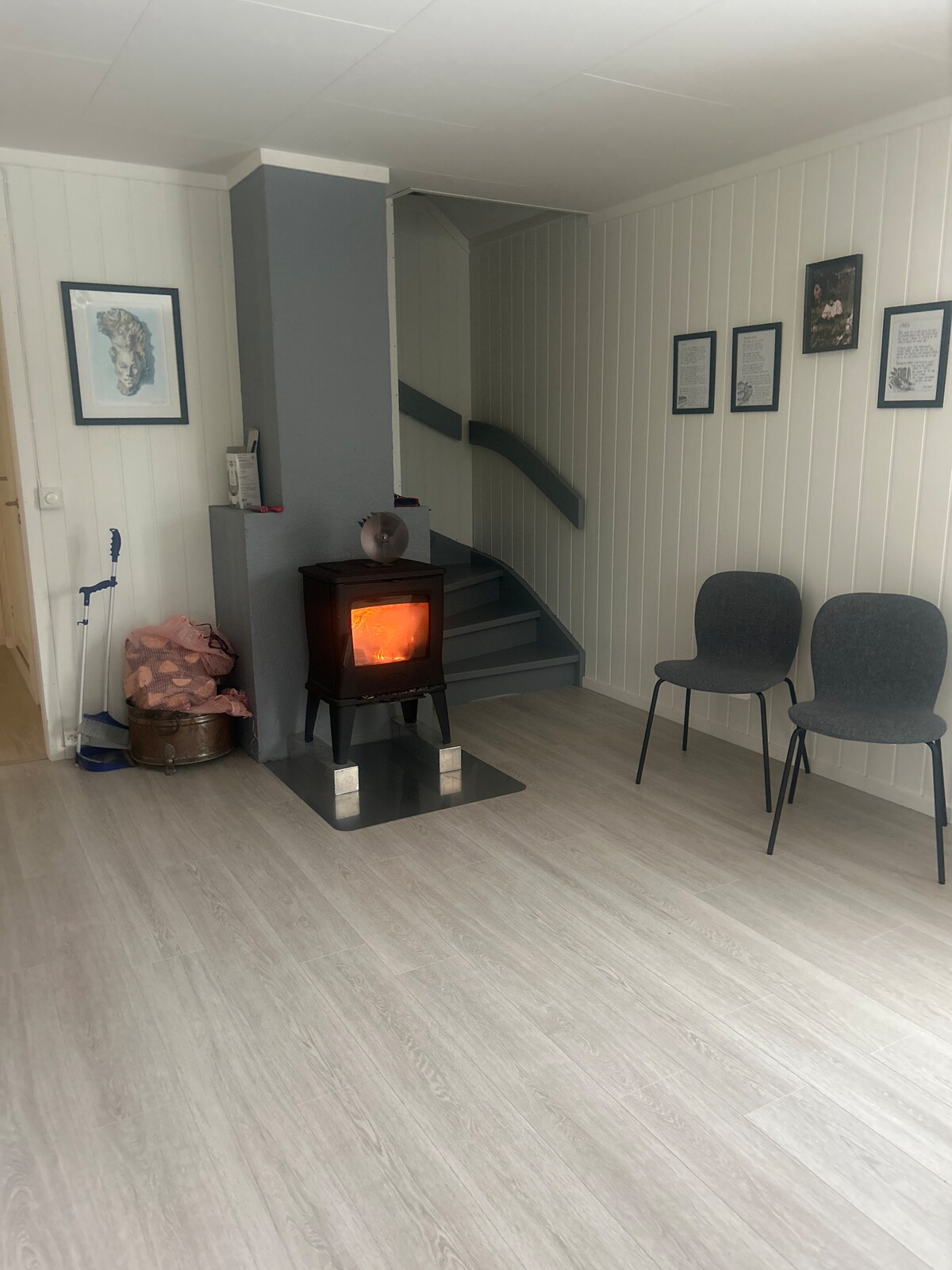 Ici, vous pouvez vous détendre et laisser votre âme se reposer. La forêt est à proximité et les montagnes sont à une distance raisonnable en voiture. Baies et champignons dans les champs quand c'est la saison. Il y a un bateau à rames et du bois pour la cheminée. Salle de bain avec douche et lavabo. Toilettes à l'extérieur du chalet. Cuisine entièrement équipée. Un lit double dans une chambre. Dans l'alcôve, il y a quatre lits et dans la cuisine un canapé-lit. Un fantastique salon aménagé dans l'ancien hangar à bateaux. Un sauna au feu de bois juste au bord du lac.