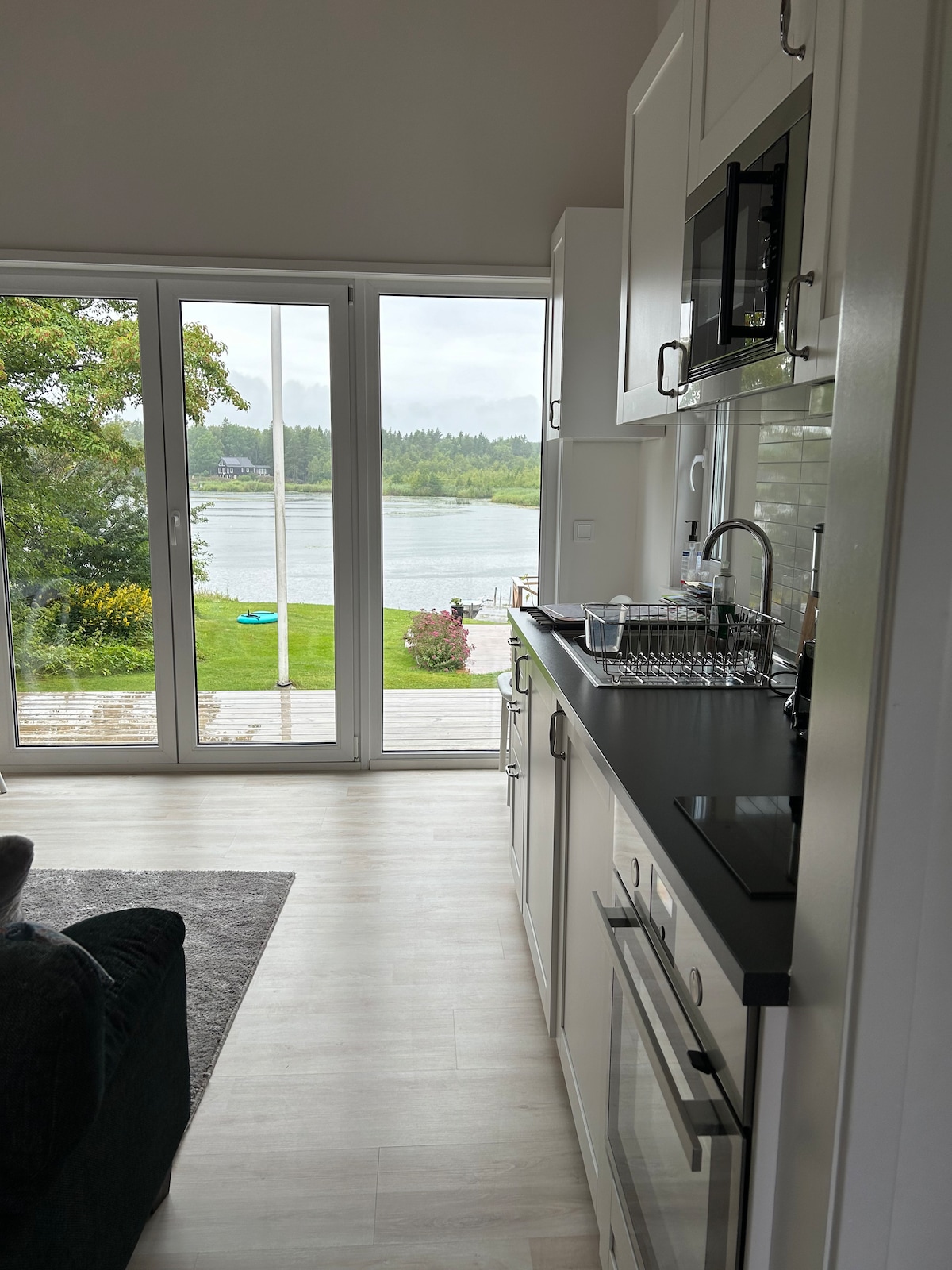 Fantastique chalet de 45 m ² avec terrain lacustre. Ici, vous pourrez nager depuis votre propre jetée, sortir en bateau et pêcher ou profiter simplement du coucher de soleil depuis la grande terrasse. Fibre/WiFi. TV et Apple TV. 2 grandes chambres 3 chambres loft (pas pleine hauteur). Cuisine équipée avec : - Réfrigérateur-congélateur, lave vaisselle, cuisinière, plaque de cuisson à induction Toilettes avec chauffage au sol Salle de douche et buanderie au rez-de-chaussée (entrée séparée) : Salle de douche carrelée avec lave-linge et lavabo.