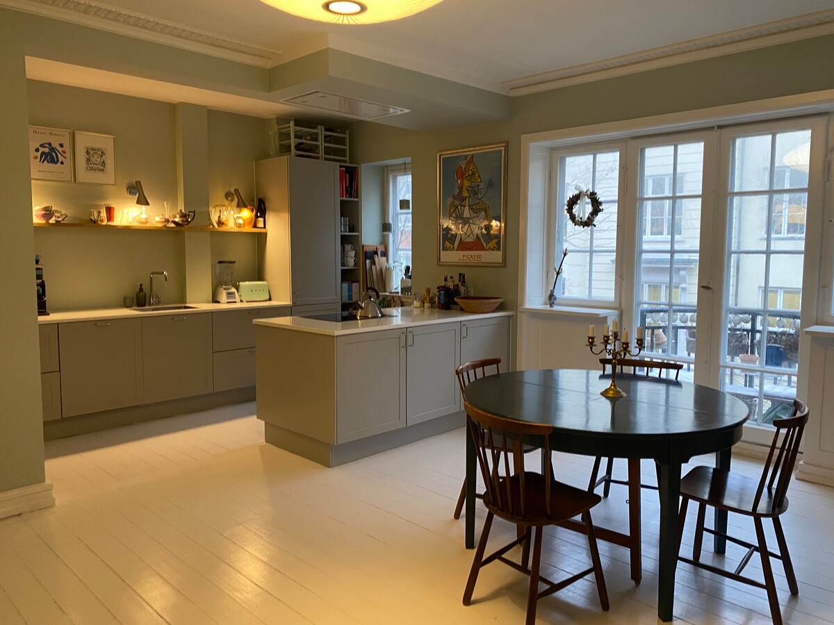 Luxurious bright 200 sq m apartment with unique location in the heart of Østerbro. Spacious living and dining room, big kitchen, a master bedroom with king size bed and two children's room Feel free to ask us if you have additional questions.