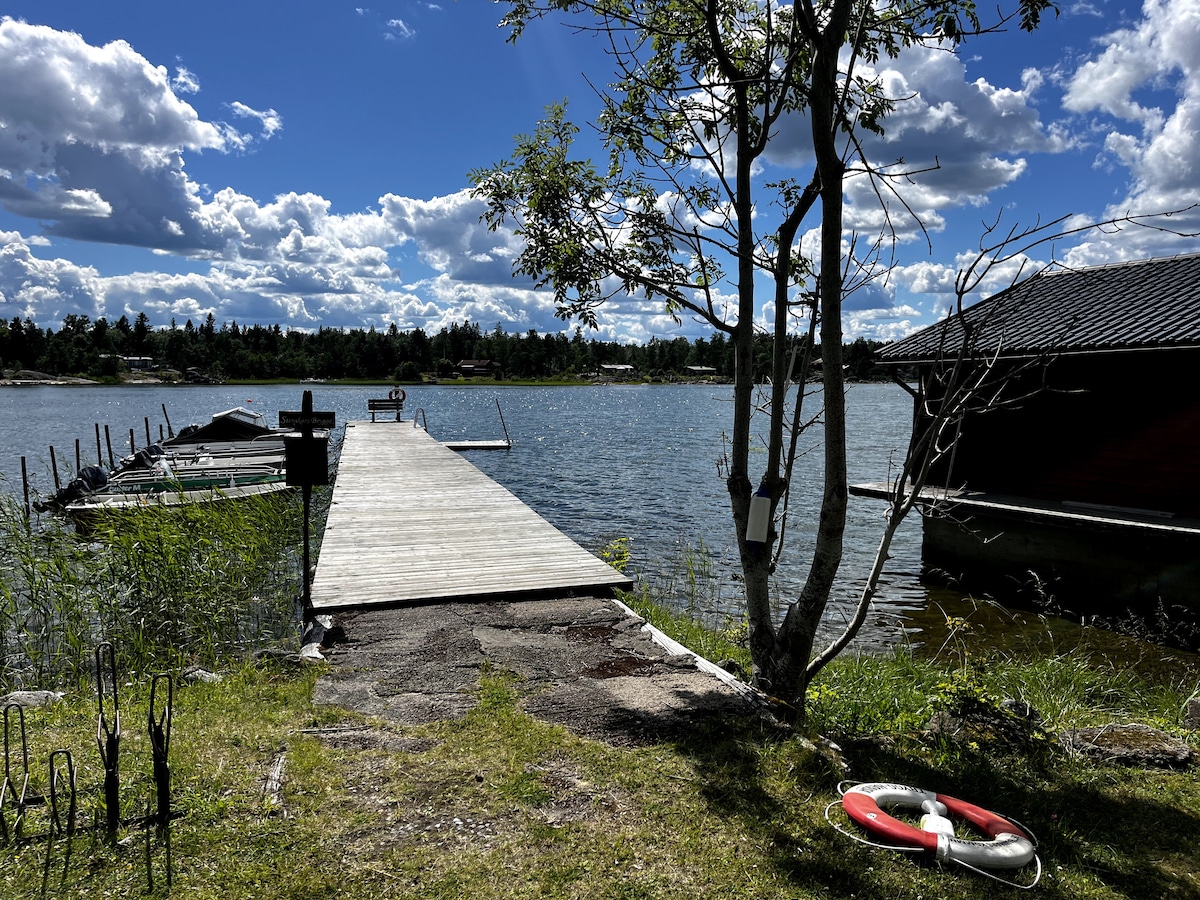 Près du lac Roslagen entre Öregrund et Östhammar. Bateau.