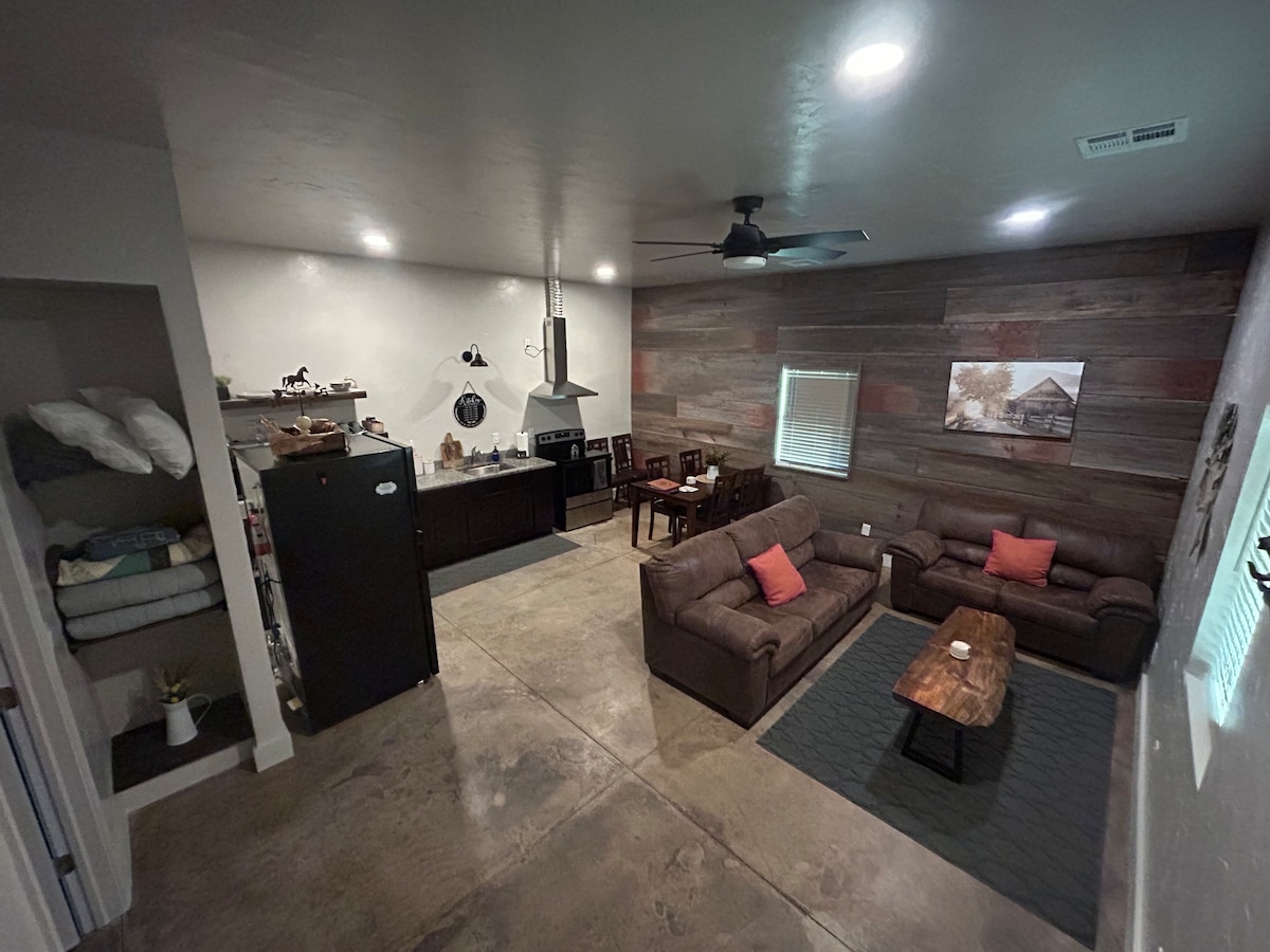 Situé dans le quartier des arts et du divertissement du centre-ville d'Emporia, où de nombreux événements majeurs sont organisés. À distance de marche du Granada Theater et de l'ESU. Grand parking gratuit. Des hébergements spacieux sauront vous plaire. Cet espace est situé au niveau inférieur d'un immeuble de bureaux commerciaux qui a récemment été réaffecté en tant qu'unité de séjour temporaire conviviale avec kitchenette. Pas besoin de s'inquiéter lorsque les orages grondent. Ne manquez pas de séjourner dans « The Bunker », l'endroit le plus sûr où séjourner.