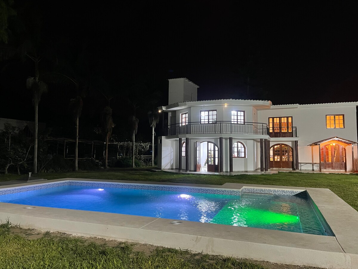 Détendez-vous avec toute la famille dans cet endroit calme. Nous sommes une maison pet-Friendly et privée, nous avons toutes les commodités, eau, électricité, wi-fi, directv, piscine, jacuzzi, 5 chambres, 5 salles de bains, barbecue, four à bois, caja china et à seulement 20 minutes de Trujillo