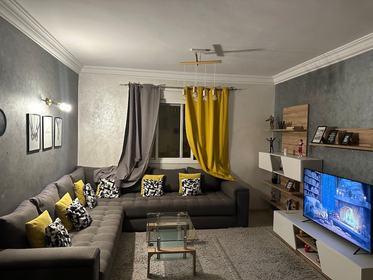 ✨ Bel appartement lumineux à El Jadida✨ idéal pour un séjour touristique ou professionnel. Situé au 4ᵉ étage (sans ascenseur), il dispose de 2 pièces, une salle de bain, une cuisine équipée et une table à manger, pouvant accueillir jusqu’à 3 personnes. Emplacement parfait 📍: - face au centre commercial Marjane, - 5 min de la plage Sidi Bouzid et - 8 min du centre-ville. Clés remises en main propre ou en self check-in.