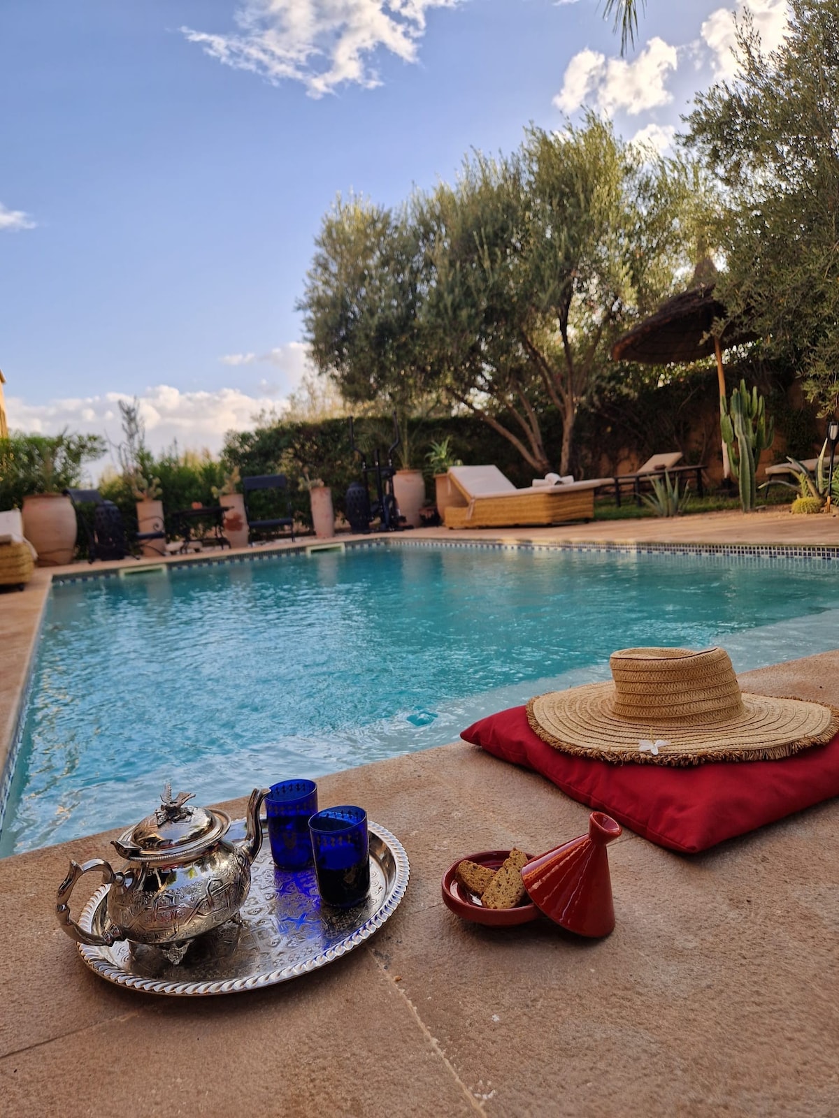 Un écrin de verdure confidentiel aux portes de la ville. À seulement 5 minutes du Palais de Namaskar 15 minutes du centre-ville, le Riad Alba vous ouvre ses portes dans un environnement où le calme et la nature règnent en maîtres. le Riad conserve l’âme marocaine à travers une architecture arabo-andalouse raffinée. Alba est le seul riad de la propriété à disposer d’une véritable piscine privative, offrant à ses hôtes intimité et confort exclusif. Petit déjeuner Marocain offert.
