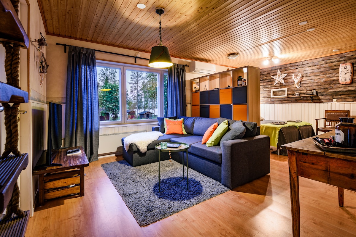 Appartement de vacances à Ukkohalla, salon + chambre + salle de bain/wc + sauna