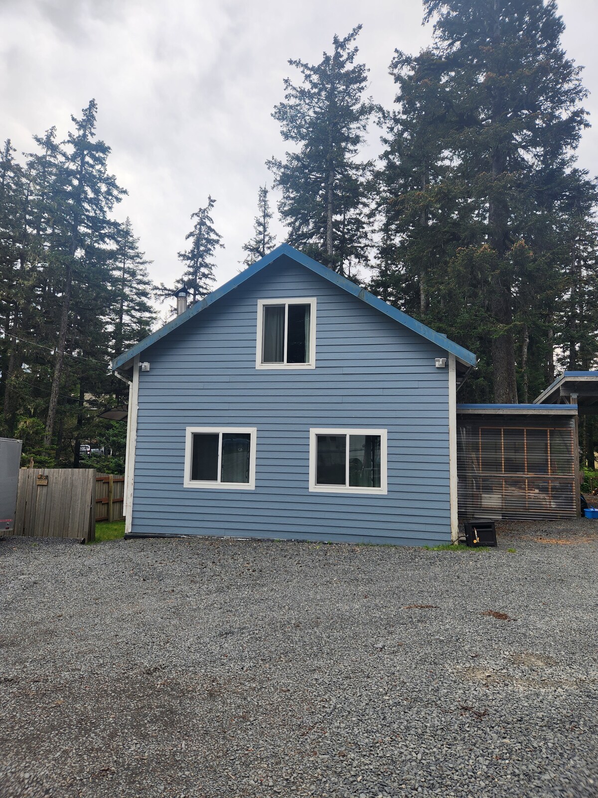 Le BnB est situé au 2e étage de notre maison en bord de mer. Cet appartement à l'étage, entièrement meublé, dispose d'une entrée privée qui vous oblige à monter 14 marches. La chambre, le salon et la cuisine ont tous une vue sur l'océan qui donne sur l'historique Mill Bay. Il y a une terrasse privée où vous pouvez vous asseoir et observer régulièrement des pygargues à tête blanche, des loutres de mer et plus encore. Nous sommes à seulement 3 miles du centre-ville, à 1 mile de Safeway et Wal-Mart, et à 1/2 mile du magnifique parc historique d'État de Fort Abercrombie.