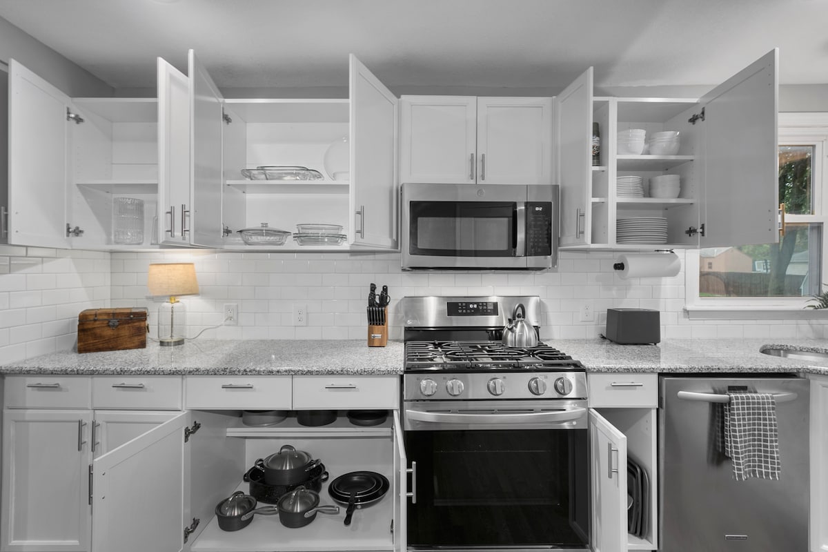 Découvrez le meilleur d'Overland Park depuis notre charmant ranch rénové. Niché dans un quartier calme près du centre-ville, ce logement vous permet de découvrir le mode de vie local à son meilleur. Avec deux chambres, une salle de bain moderne et tout le confort d'un chez-soi, vous ne voudrez jamais partir ! L'intérieur allie charme confortable avec des équipements contemporains, tandis que l'arrière-cour isolée d'un demi-acre est parfaite pour se ressourcer. Que vous soyez là pour un week-end ou un séjour plus long, votre escapade parfaite vous attend !
