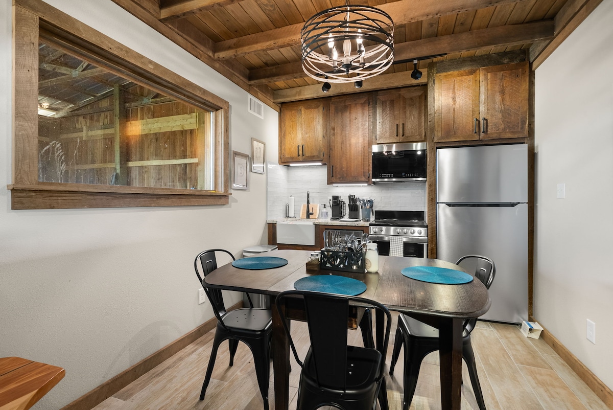 La grange laitière rénovée offre une vue sur la campagne, mais le confort. Séjour à aire ouverte, hauts plafonds, grandes fenêtres encadrant les paysages. Cuisine équipée avec appareils électroménagers haut de gamme, comptoirs en quartz ; et capacité pour les repas cuisinés. Superbes finitions de salle de bain avec une ambiance lumineuse. Patio privé, vue sur les collines et les vallées. 1 lit queen, 1 lit gigogne. À utiliser pour des escapades, des vacances ou pour échapper à la vie citadine. Télévision connectée avec applications payantes, wifi. À quelques minutes de Pea Ridge, Ar, à 20 minutes de Bentonville et à proximité de la brasserie.
