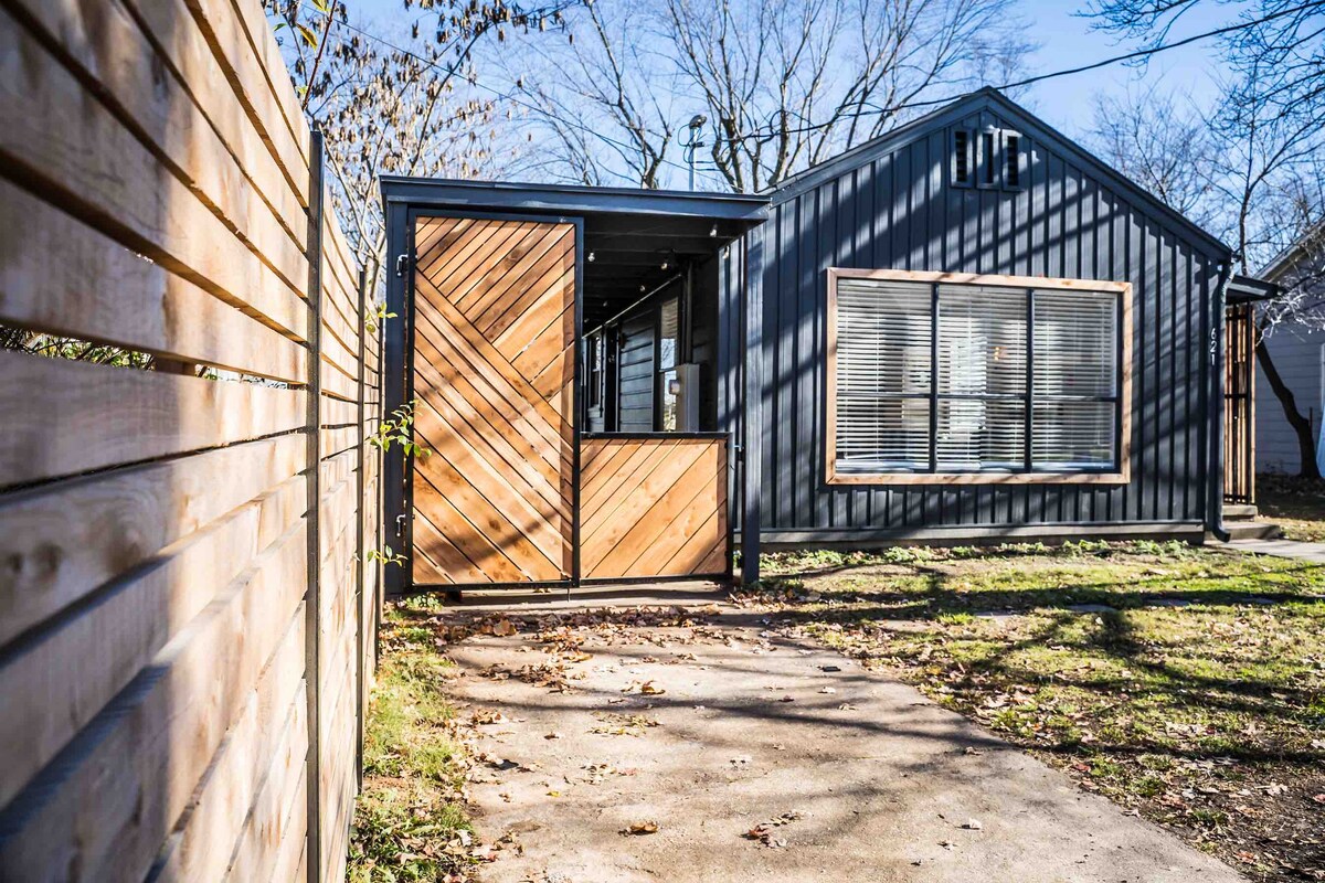 Arrivée sans contact. Micro-maison sur mesure, conçue à partir d'un conteneur d'expédition. Nous avons travaillé à la fois sur l'artisanat et sur le décor éclectique. Chaque centimètre carré a une histoire et vous apprécierez l'œuvre d'art unique ou vous détendre sur la terrasse qui renforce la vue sur les Ozarks et la Razorback Greenway. Que ce soit pour observer les gens ou profiter du plein air derrière le mur de fenêtres, cette petite maison unique en son genre ne vous décevra pas. Explorez Dickson ou l'UofA, à quelques pas seulement.