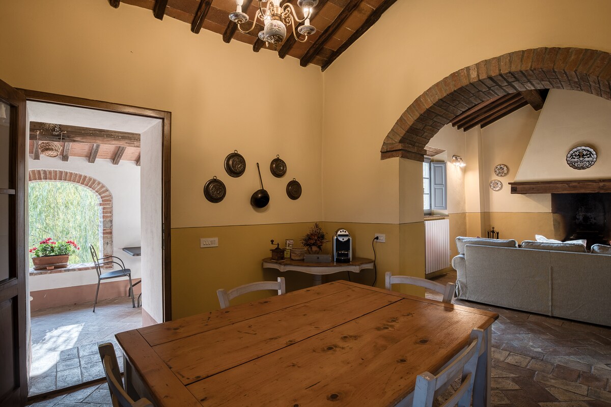 Un endroit merveilleux pour passer quelques jours en agréable compagnie. Un grand salon avec cheminée où vous pourrez vous détendre au retour de belles promenades, balades à vélo et excursions. L’appartement indépendant se trouve à 15 km de Sienne, à 20 km des centres thermaux et à 40 minutes des villages de San Gimignano et Monteriggioni. Dans l’ensemble, il y a une ferme qui produit des vins et de l’huile avec la possibilité de visites guidées et de dégustation de nos produits avec des dîners à thème.