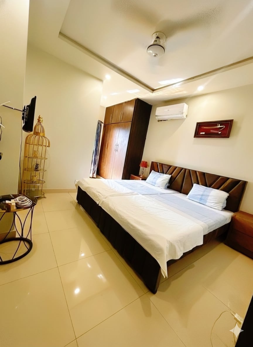 Bienvenue dans votre havre de paix au dernier étage au cœur de Bahria phase 7. Cet appartement moderne de 2 chambres dispose de 3 salles de bain spacieuses, d'un balcon privé avec une vue paisible et de 3 puissants climatiseurs pour vous garder au frais et confortable toute l'année. Élégamment meublé avec tous les éléments essentiels, il est parfait pour les voyageurs d'affaires, les familles ou les couples à la recherche d'un séjour relaxant. Situé à proximité des meilleurs restaurants, magasins et cafés, tout ce dont vous avez besoin est à quelques pas.