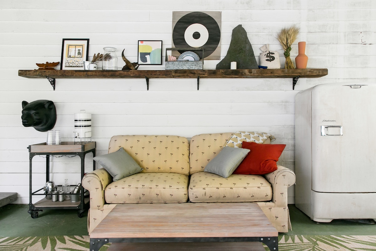 StarryPines Cottage est un bungalow de villégiature des années 1920 qui a été rénové. La maison dispose de pièces en bois récupérées et de meubles locaux ainsi que de touches modernes du milieu du siècle qui lui donnent une apparence unique et élégante. Le chalet se trouve sur une propriété pittoresque à l'entrée des Catskills. La beauté naturelle et les équipements en font une retraite parfaite. Notre famille, y compris un mélange de labrador, vit sur la propriété de l'autre côté de l'allée et partage la grande cour. Les chiens sont les bienvenus sur approbation.
